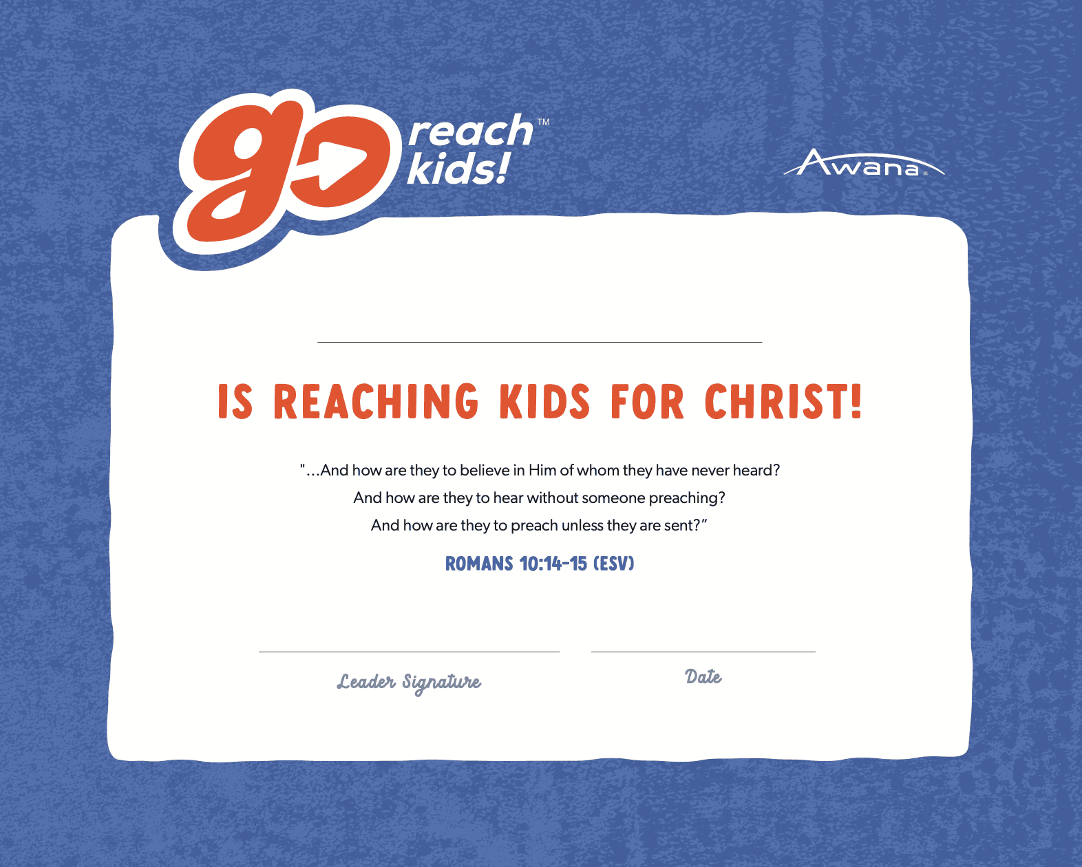 Awana GO Certificate (10 Pack)